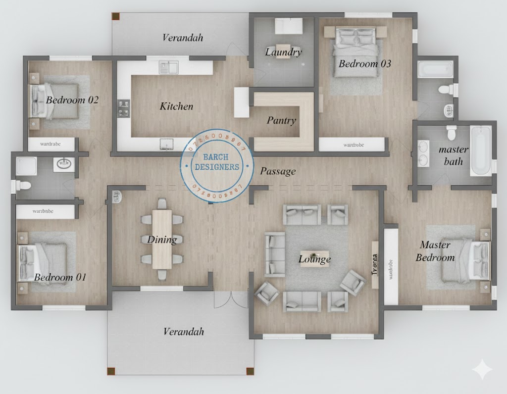 This is a well exclusively design of a 4 bedroom bungalow. A design that can either be roofed, flat roofed or  hidden roofed and which can fit well in most of the terrains. The design is done with privacy of rooms in mind and its simplicity makes it unique.